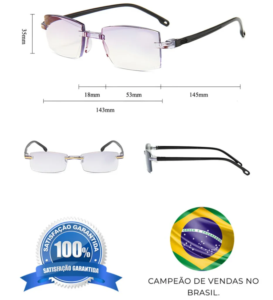 Óculos Inteligente Multifocal Diamantes 2em1 Perto/Longe TR90 MAX SEM ARO ANTI BLUE LIGHT